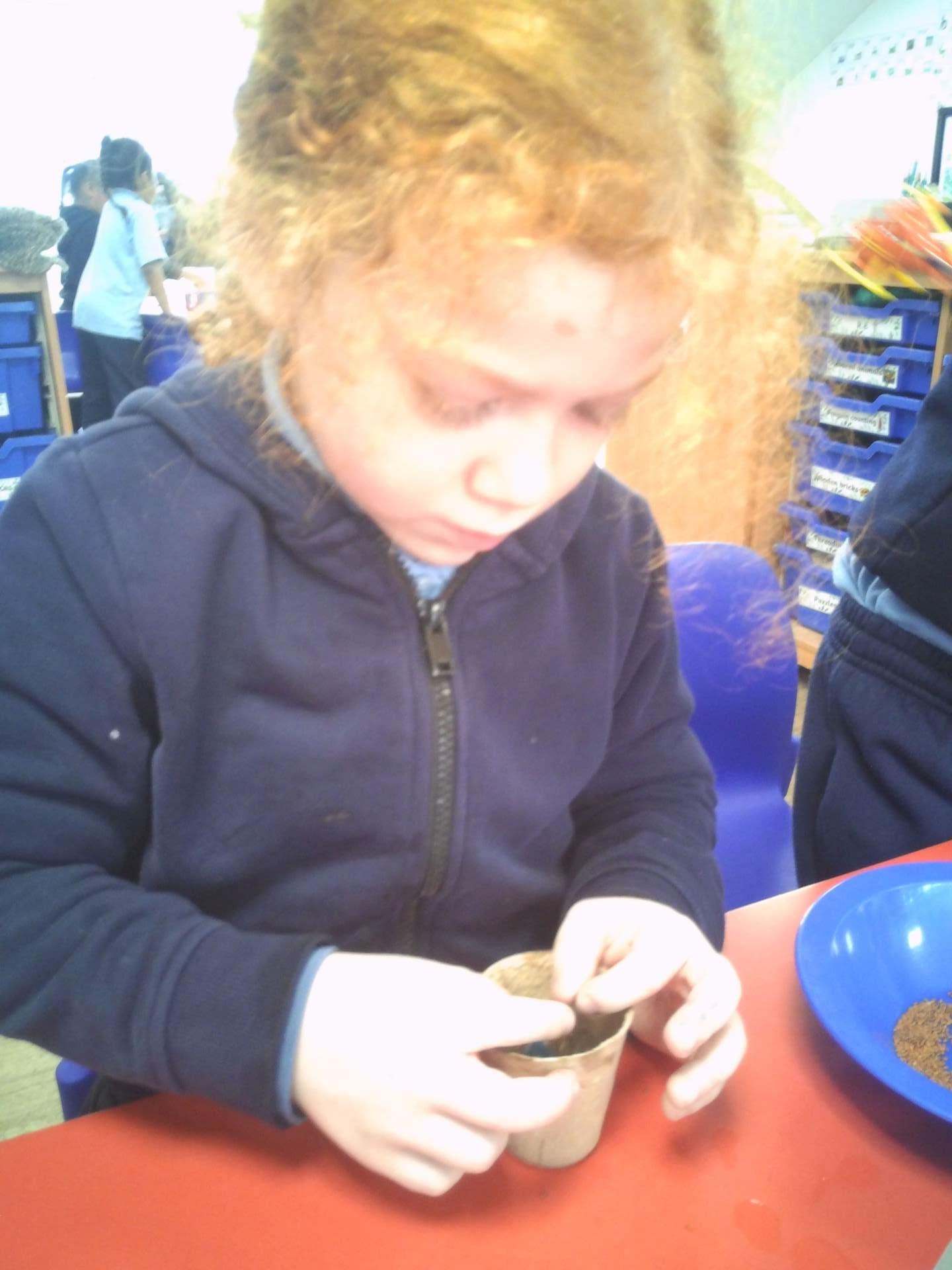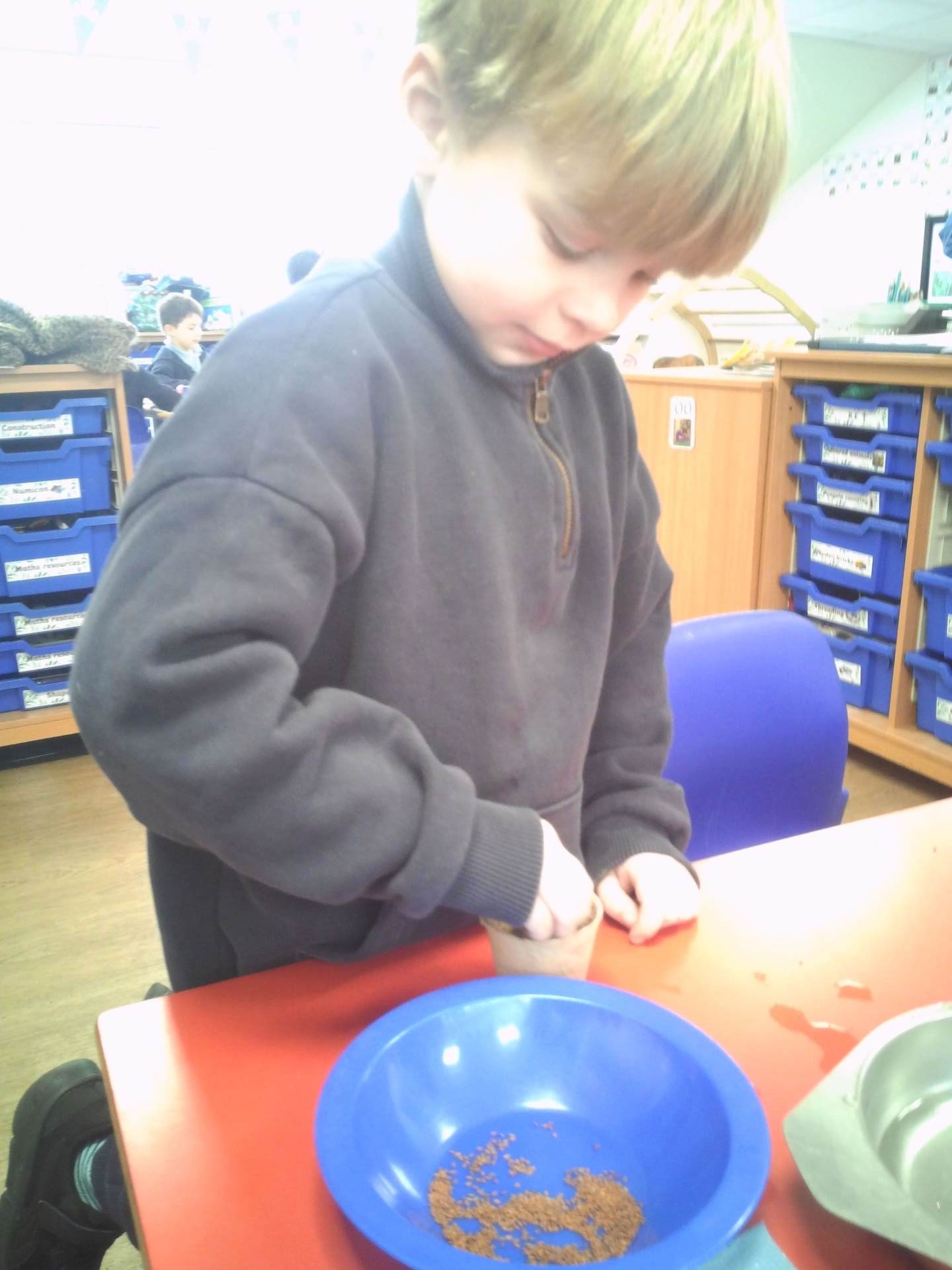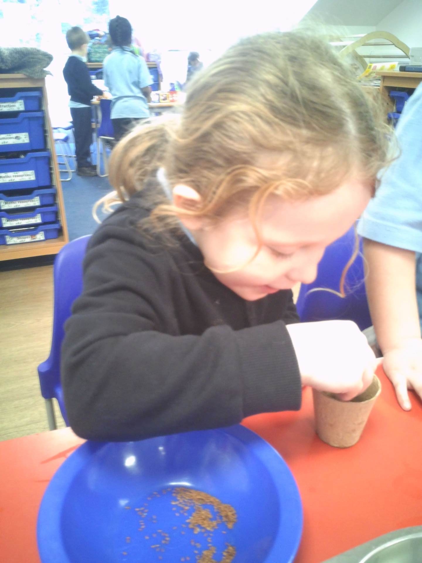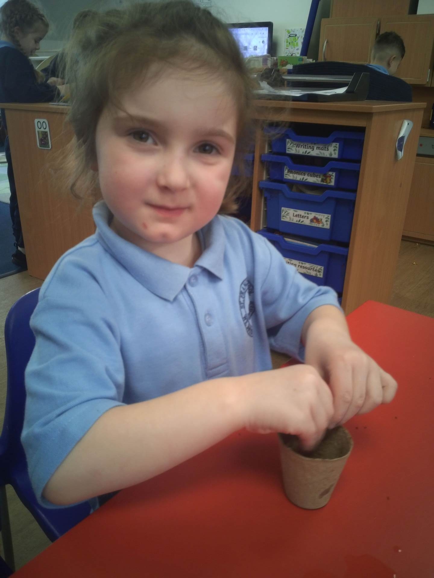 In Reception we have been learning how plants grow. We decided that the best way to see how plants grow was to grow some ourselves! Each child planted their own cress seeds, and we are waiting to see how long it takes them to grow.