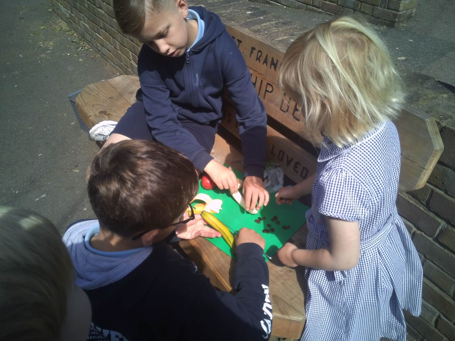 Another highlight was a creative collaboration with our Year 6 buddies, where we made minibeasts out of fruit! It was a fantastic opportunity for teamwork, creativity, and a healthy snack all in one.