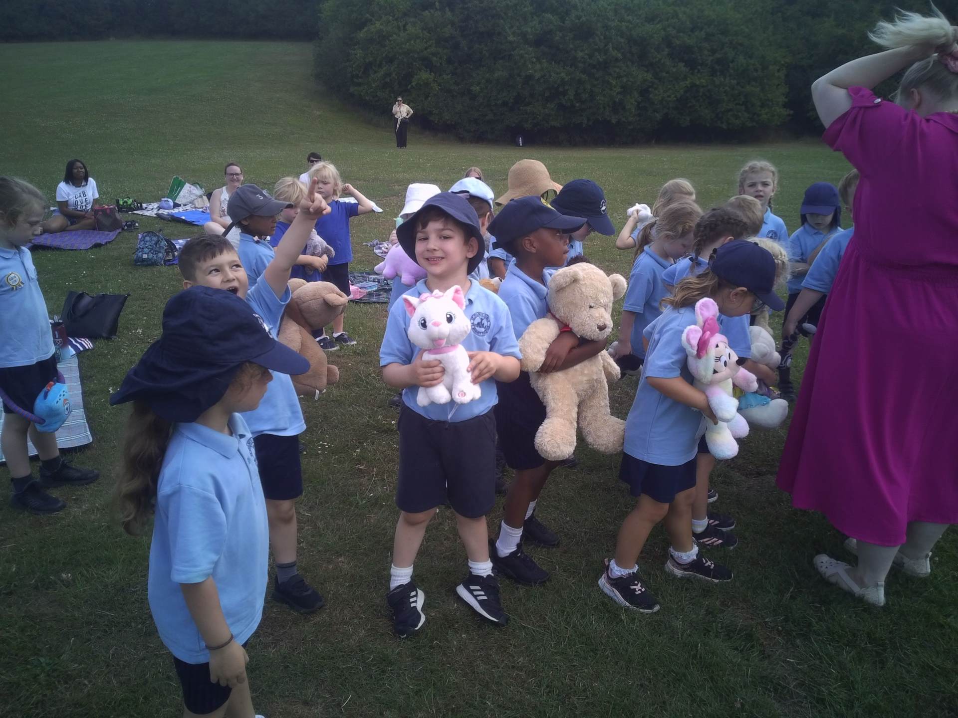 The children in Reception made the most of the sunny weather with a lovely Teddy Bear's Picnic on the school field! The children enjoyed walking to the field with their teddies, playing games, sharing a picnic, and taking part in some fun circle time activities. Thank you to all the parents who came to help!