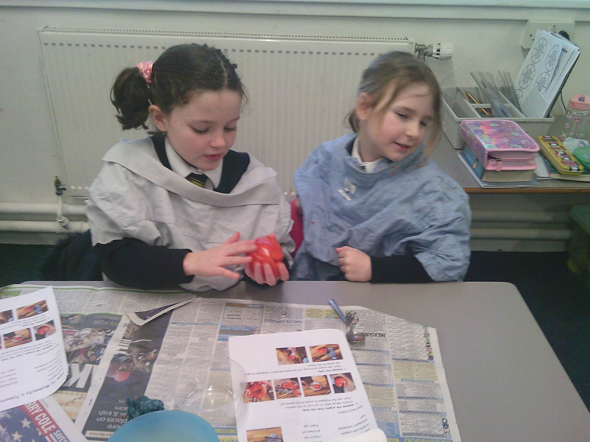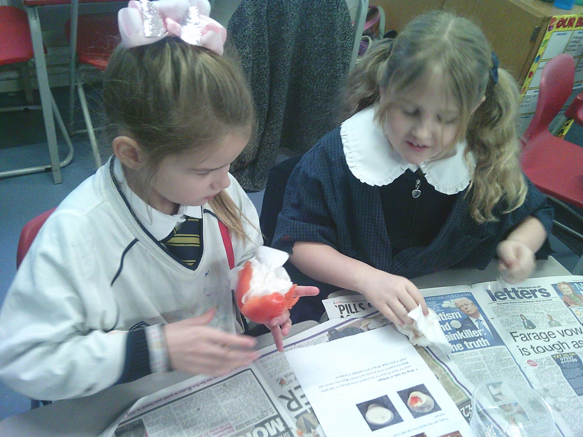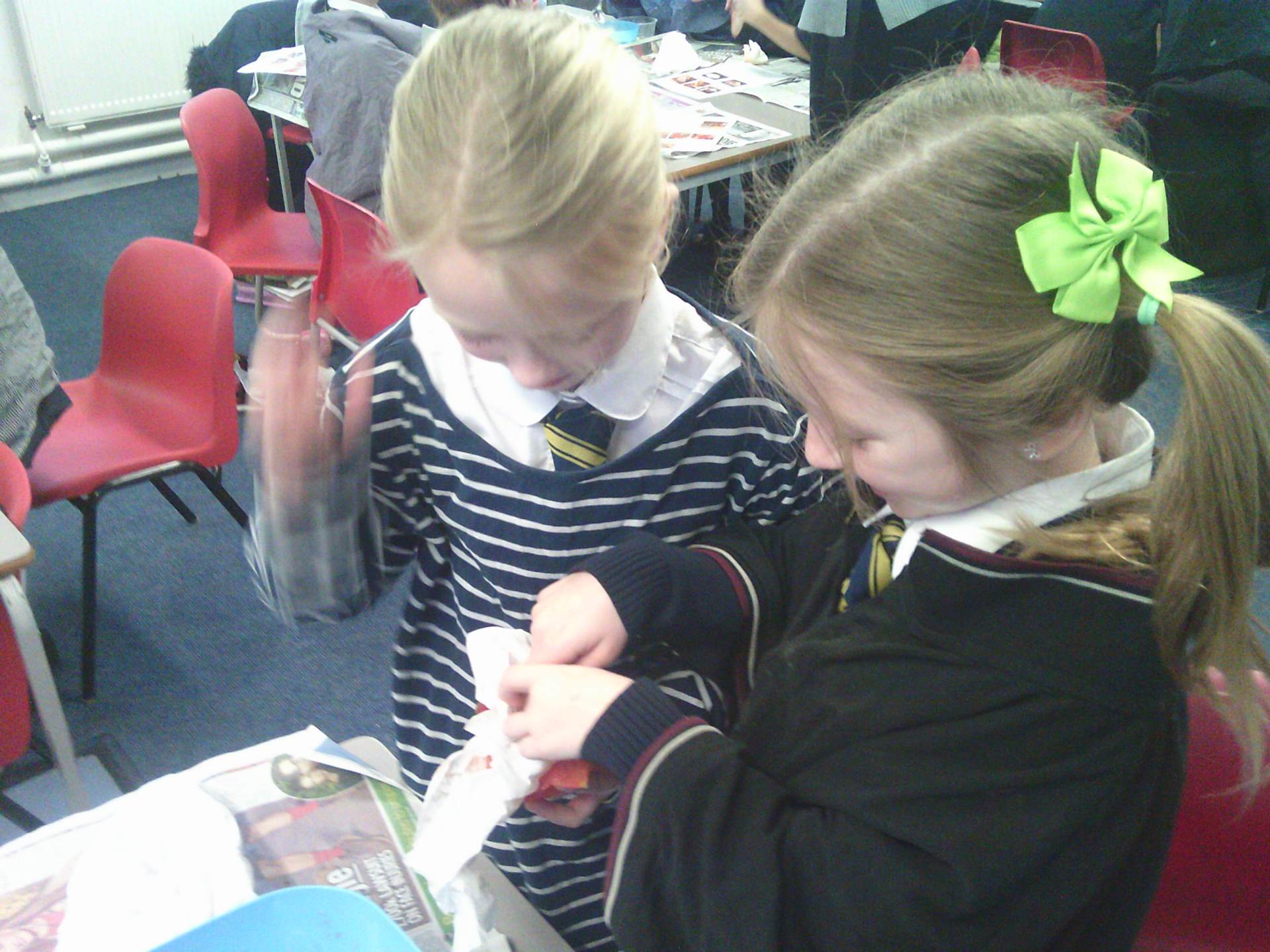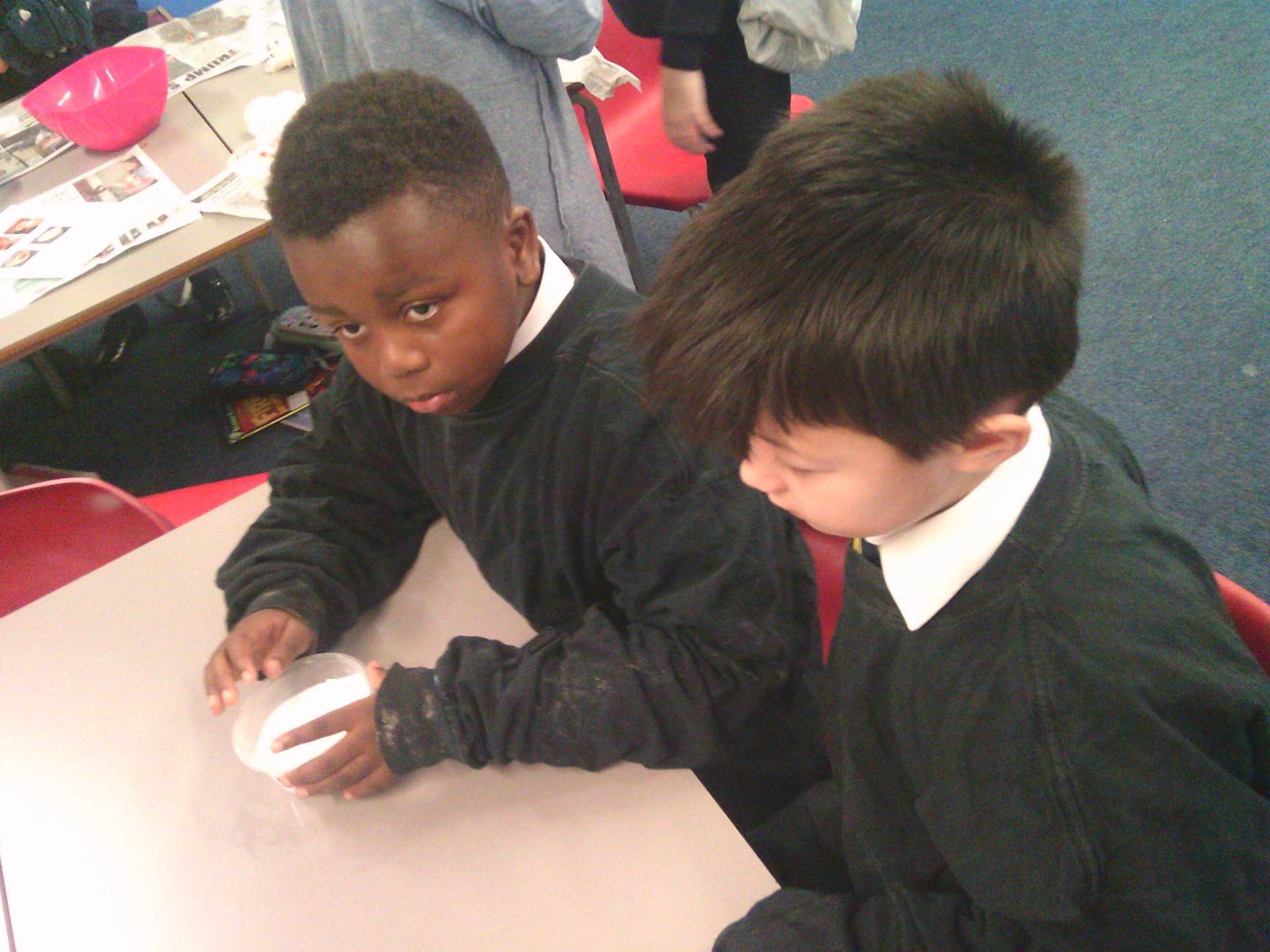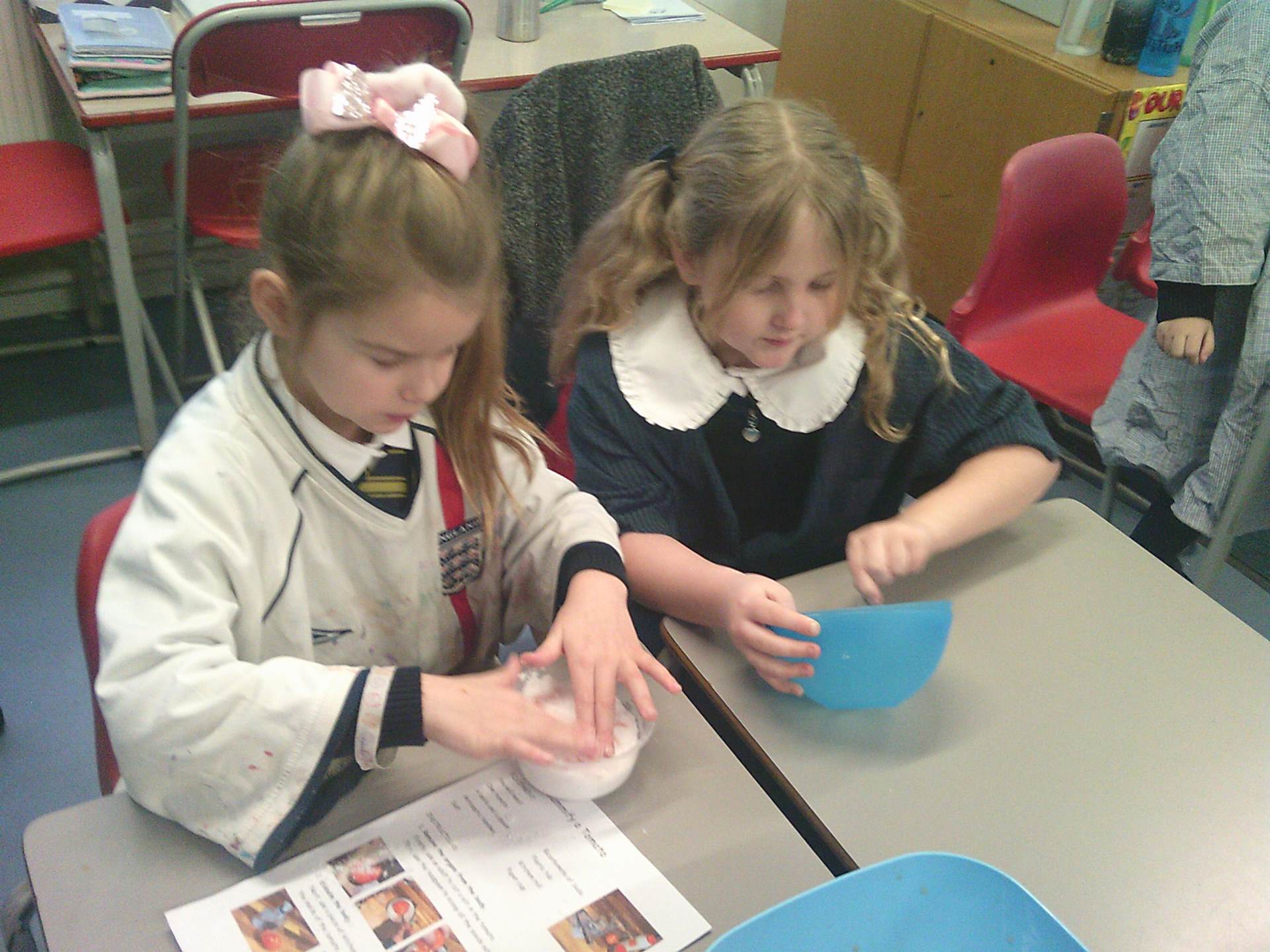 We each had a tomato and we worked together. We covered the tomato in salt and bicarbonate soda. It was really fun and really messy!