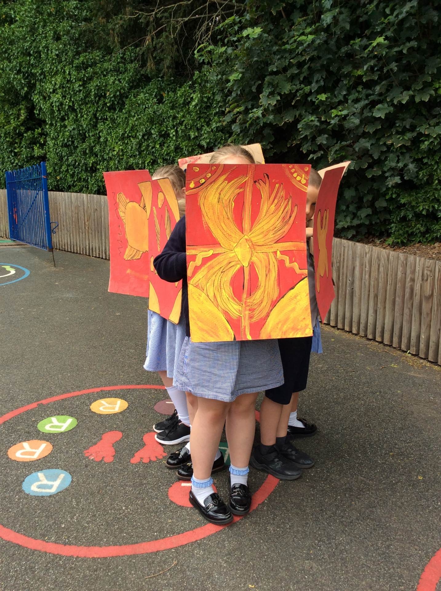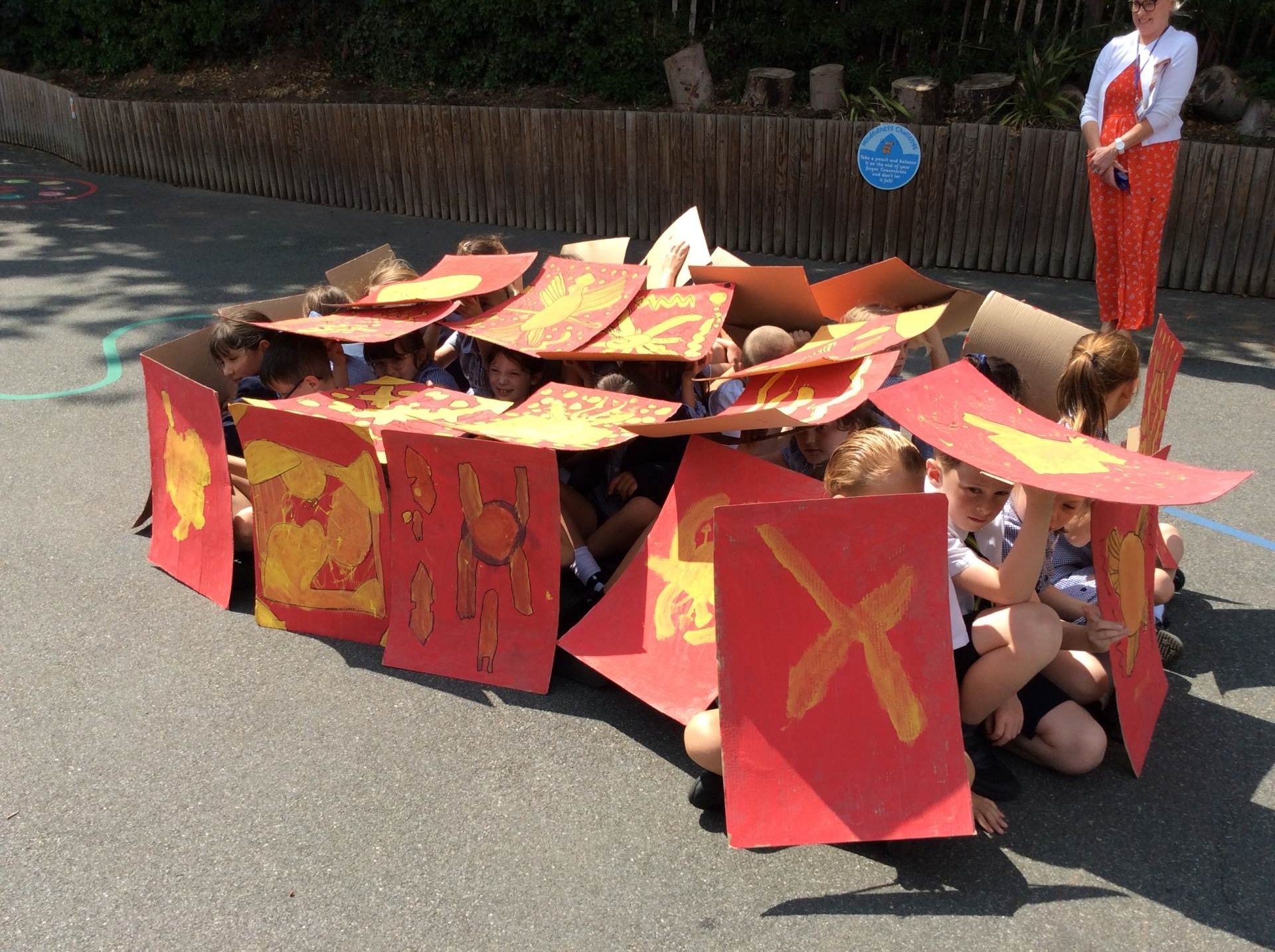 To finish our topic off, we made Roman shields and learnt how to make the formations the Romans used in battle.