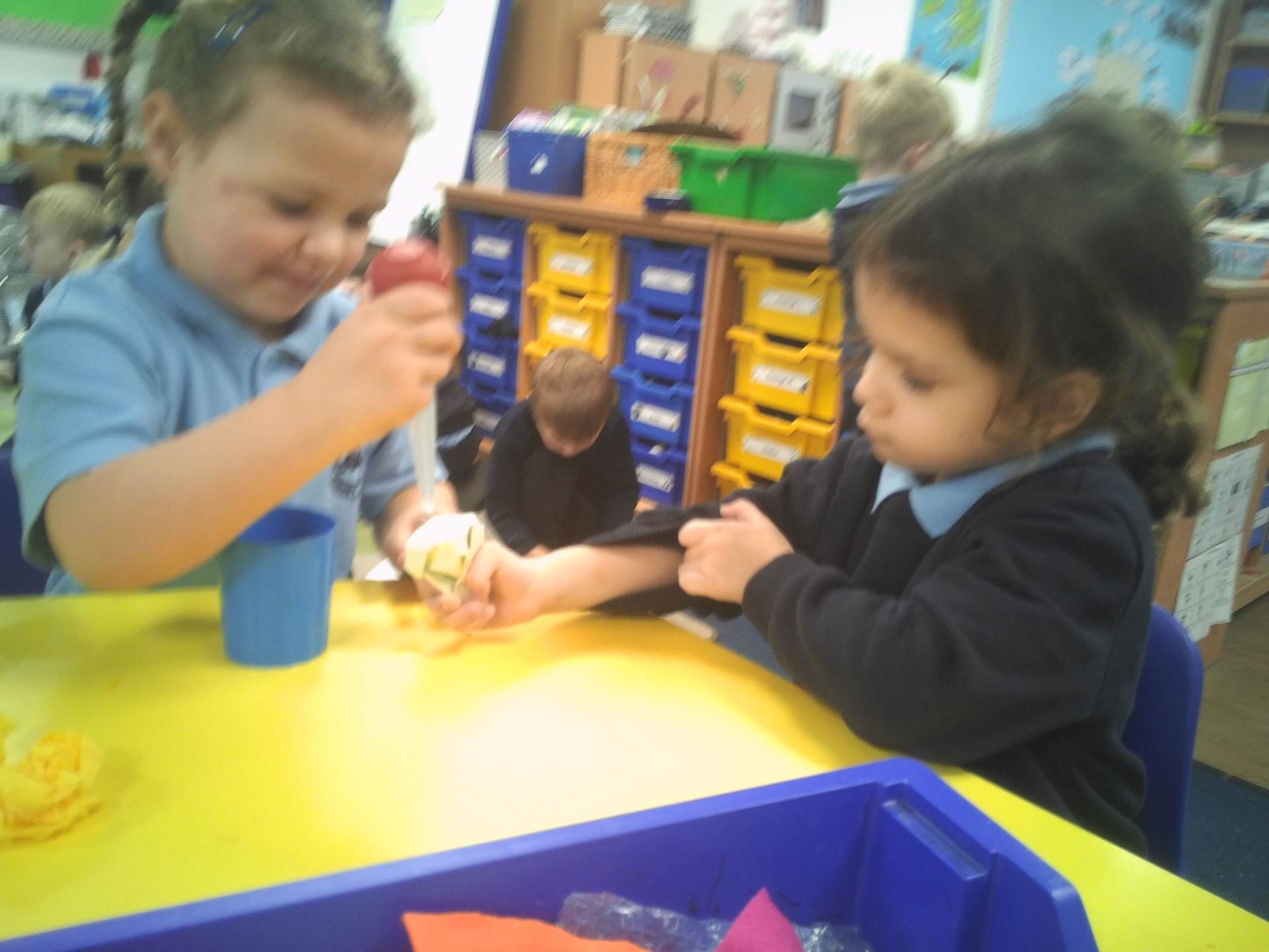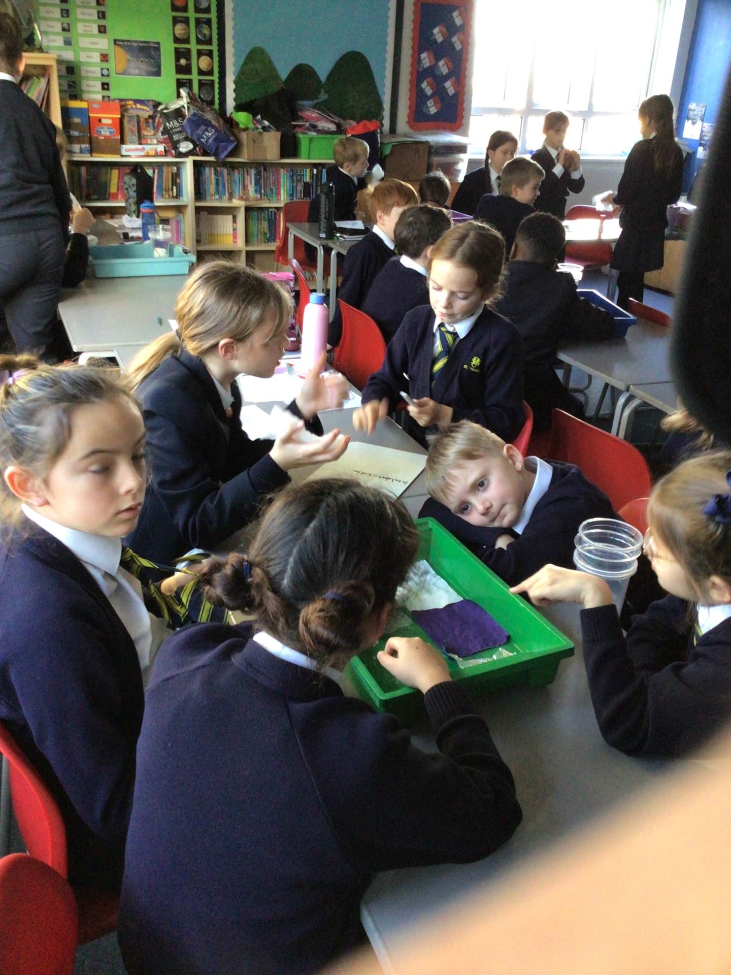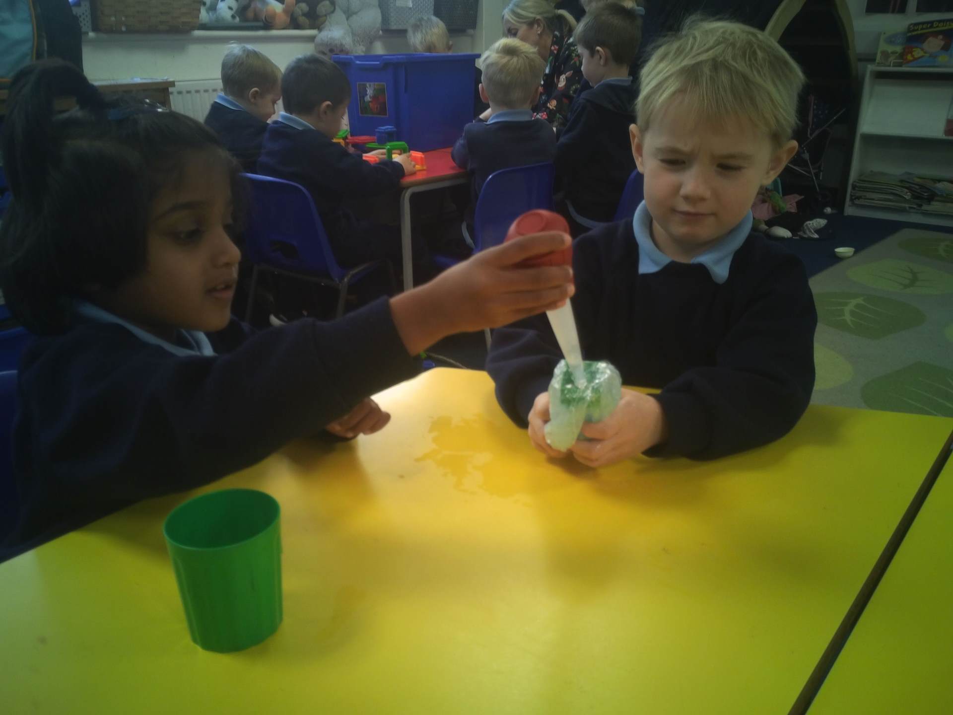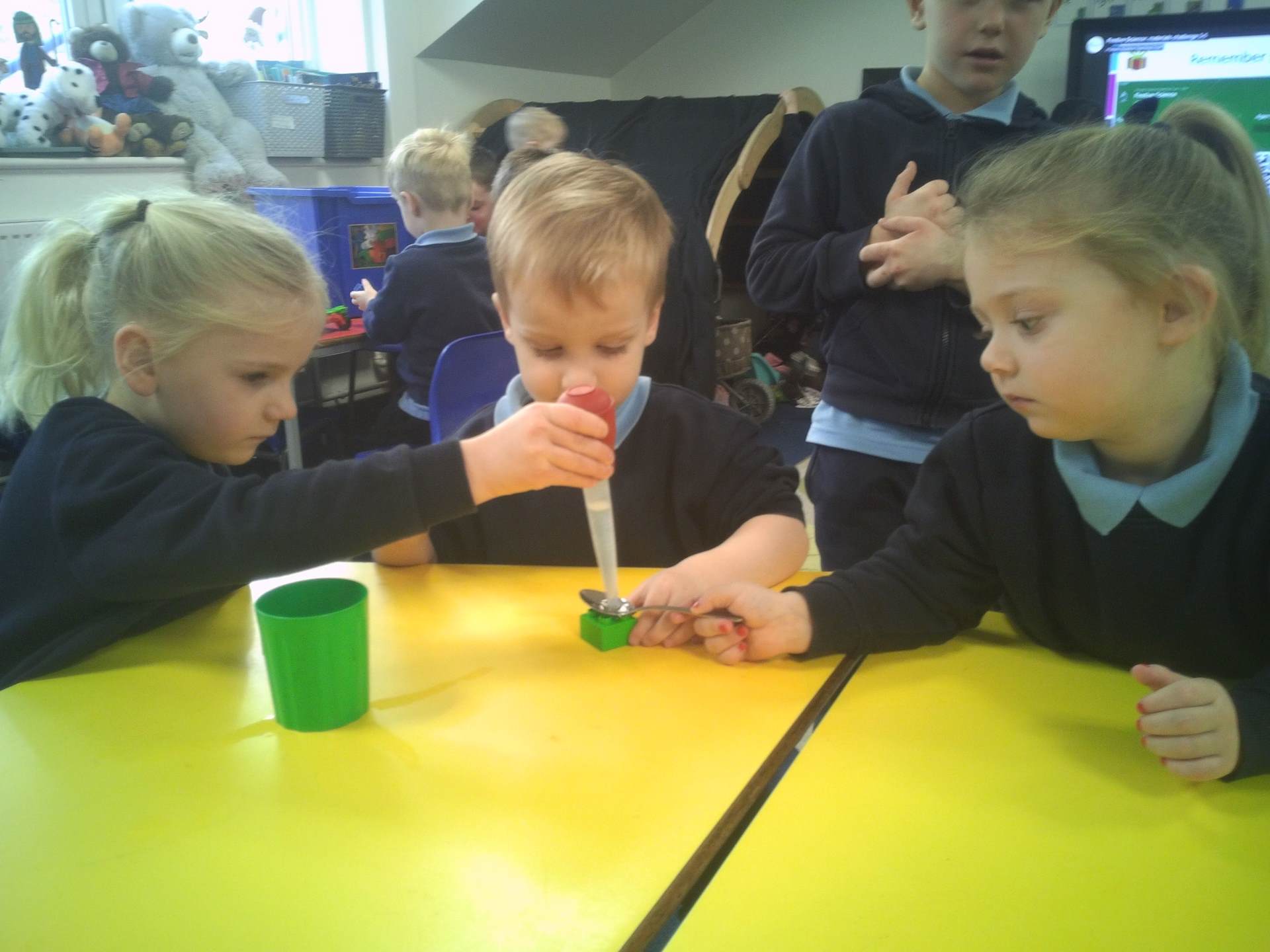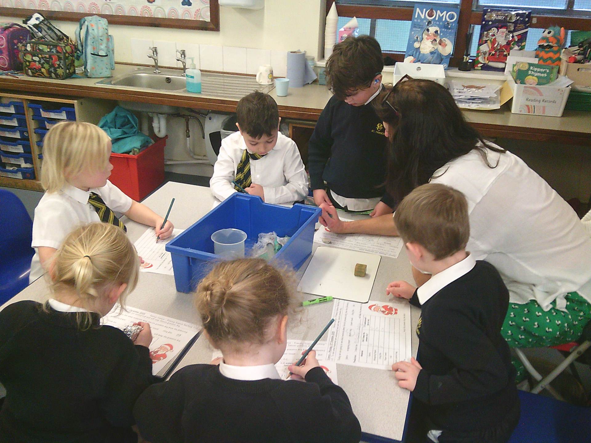One challenge focused on discovering which materials would keep Santa’s presents dry. Children tested a variety of materials, observing which absorbed water and which were waterproof. In the Star Challenge, children created stars using different materials and placed them onto water to see which star opened first, learning how materials react differently when wet.