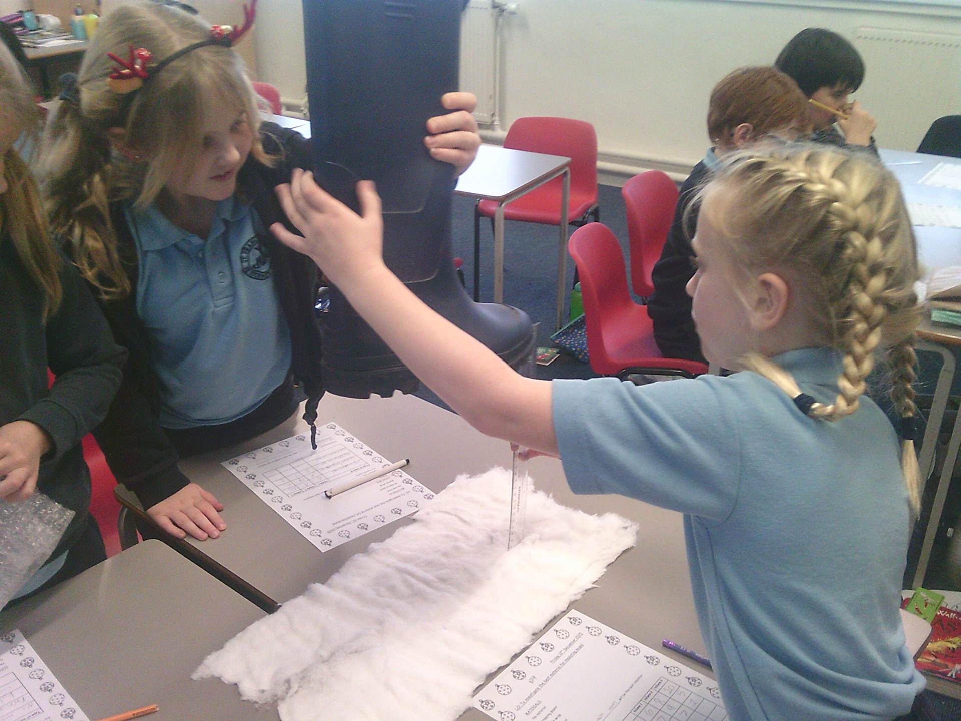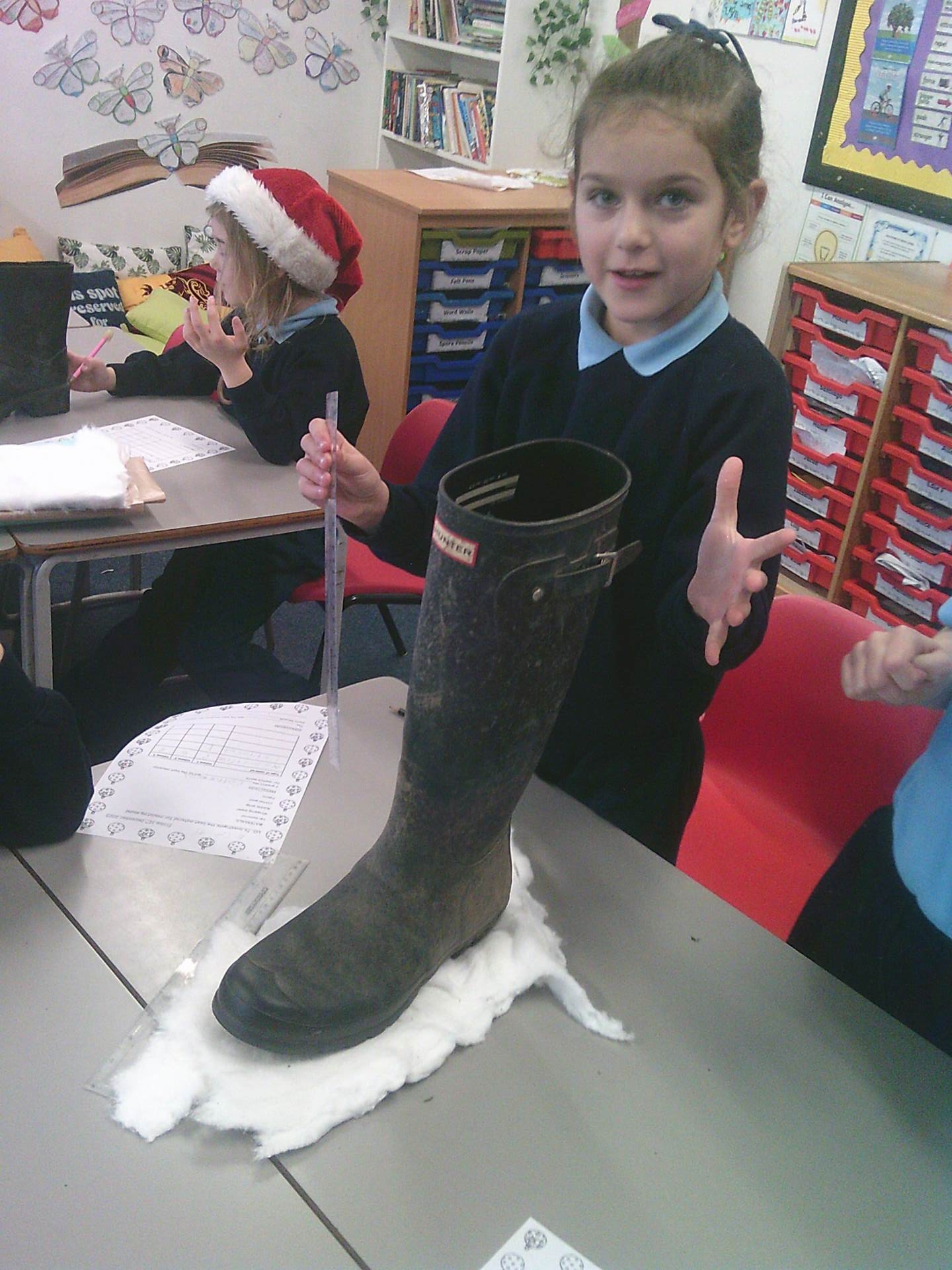 To help Santa stay quiet on Christmas Eve, children also investigated which materials were most effective at muffling the sound of Santa’s footsteps, listening carefully and comparing results. Another investigation explored which materials would stop a snowman from melting, helping children understand insulation and temperature.