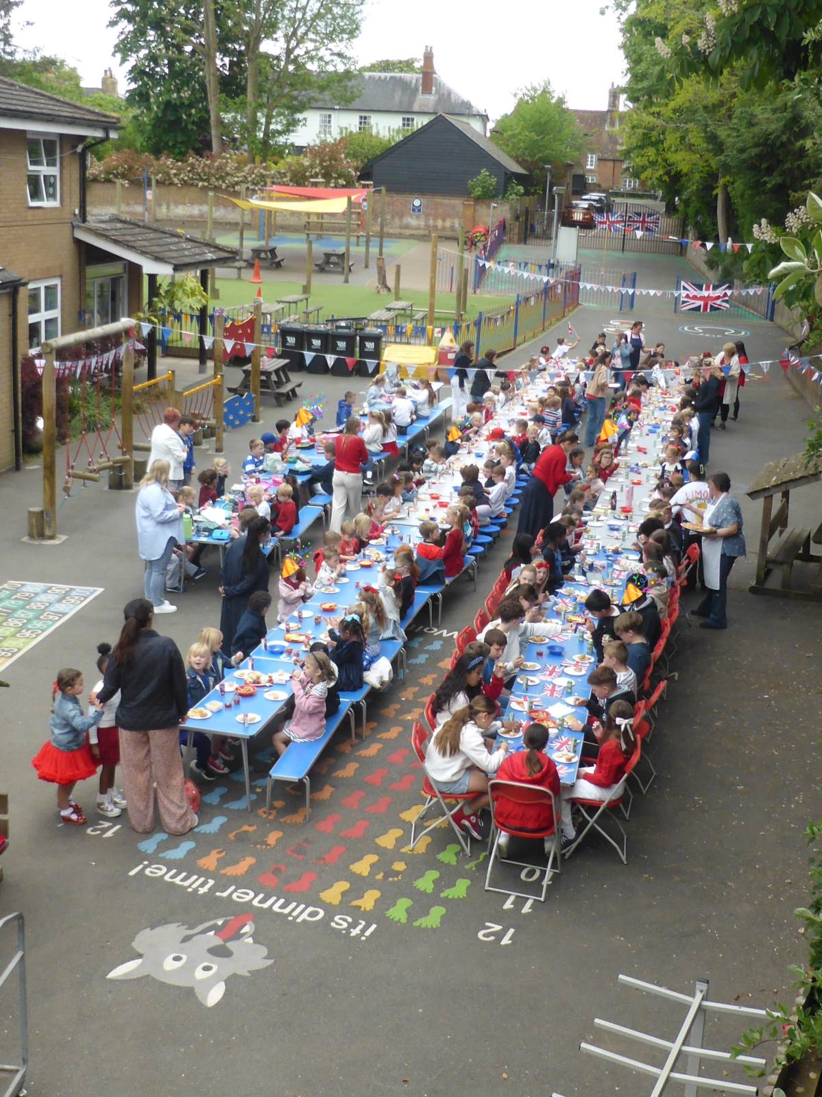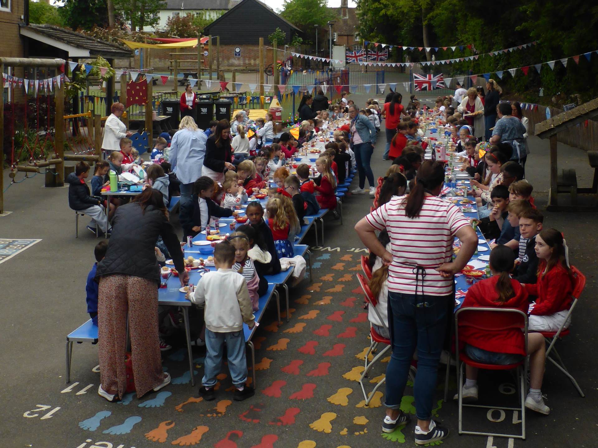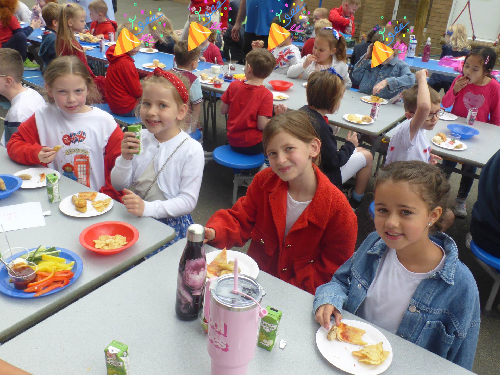 We had a fantastic day celebrating the 80th anniversary of VE Day! The children enjoyed a picnic outside, and we were lucky that the weather held out. Dressed in red, white, and blue, everyone came together to mark this special occasion with pride and remembrance.