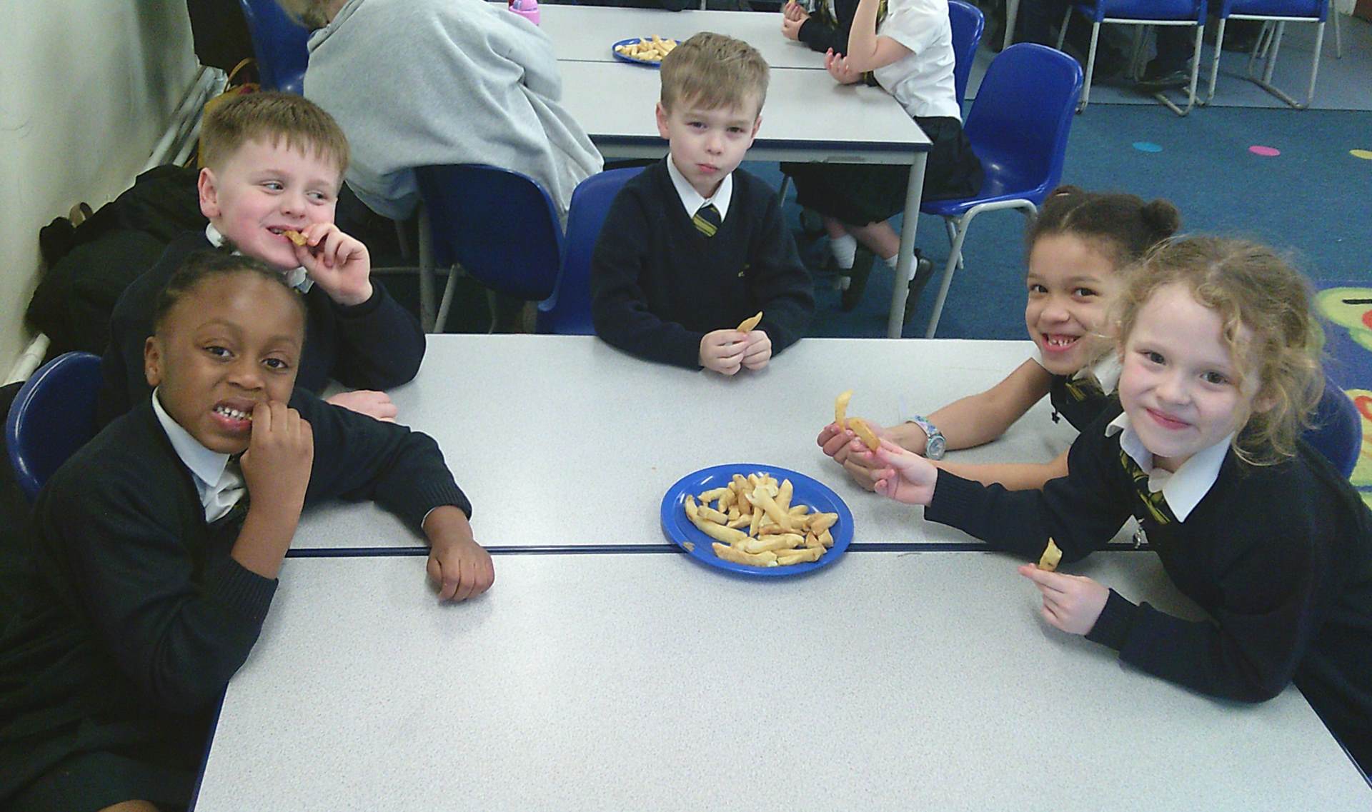 weather behaving well and enjoying the outing around their local town. They even got to warm up with some chips from the local chip shop as a treat once we returned to school.